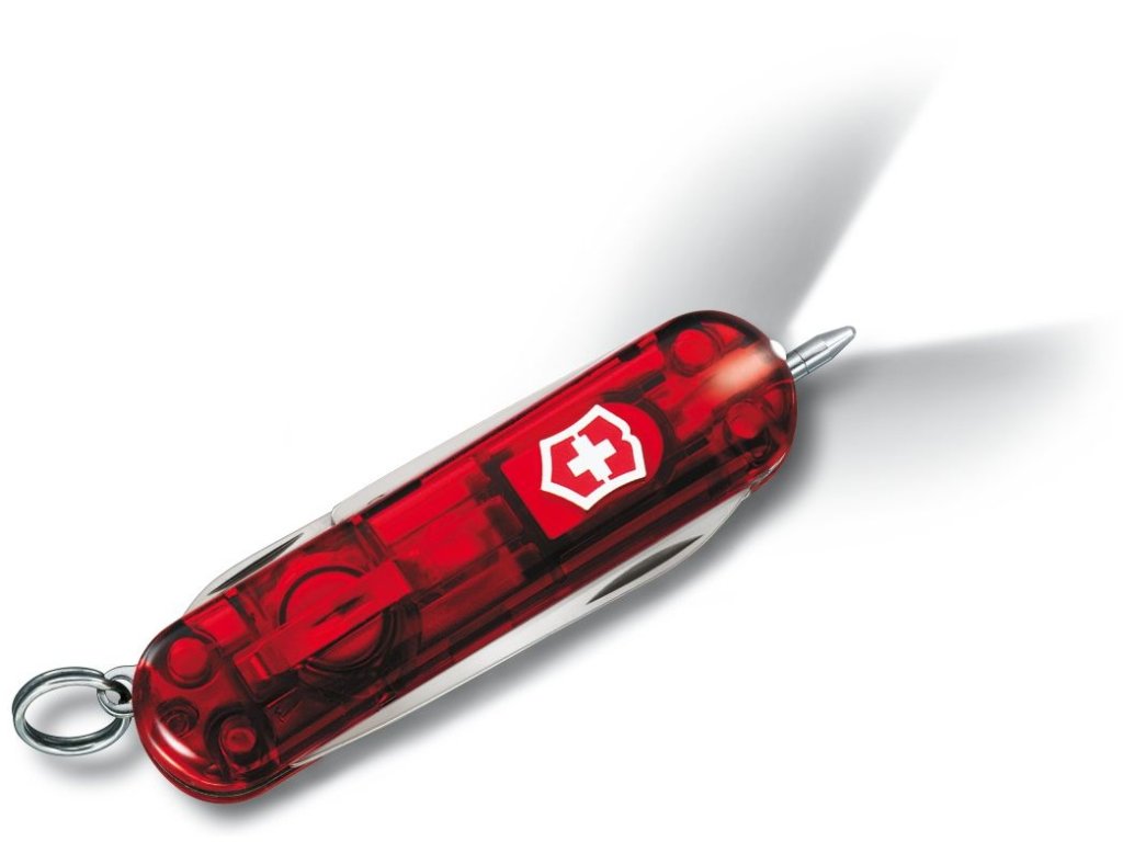 Kapesní mini nůž / klíčenka Victorinox Signature Lite, 58 mm, s bílým LED světlem, transparentní červený