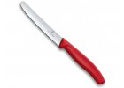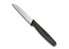 Veškeré kuchyňské nože Victorinox s plastovou rukojetí jsou naším prodejním bestsellerem, zejména nože na rajčata, které mají skvělé univerzální použití. Řady nožů Victorinox s plastovou rukojetí které naleznete dále v naší nabídce jsou 4: Swiss Standard má rovnou rukojeť a je k dispozici ve třech základních barvách a to v černé, červené a modré. Oproti ní řada Swiss Classic má rukojeť mírně zahnutou a nabízí širší portfolio barev od základních až po pastelové. Swiss Modern je vyvedena v moderních barvách a i rukojeť je u nožů této řady speciální. Řada Fibrox se vyznačuje protiskluzovou rukojetí a svou širokou nabídkou tvarů čepele je určena pro profesionální kuchaře a řezníky. Ono je to s těmi názvy nožů tak: každý výrobce kuchyňských nožů má ve zvyku dát každému noži určitý název. Například nůž na chleba, řeznický nůž, nůž na zeleninu, nůž na dort, apod... Praxe je však trochu odlišná, protože takový konkrétní nůž používáme obvykle na mnoho různých dalších činností. Kde je napsáno, že nůž na zeleninu s 10 cm dlouhou čepelí klasického tvaru nemůžeme v kuchyni použít na maso nebo na pečivo? Barevné kuchyňské nože mají velkou výhodu v tom, že když si koupíte různé barvy rukojetí, jejich hledání a skladování je mnohem intuitivnější. Je to jen na vás!