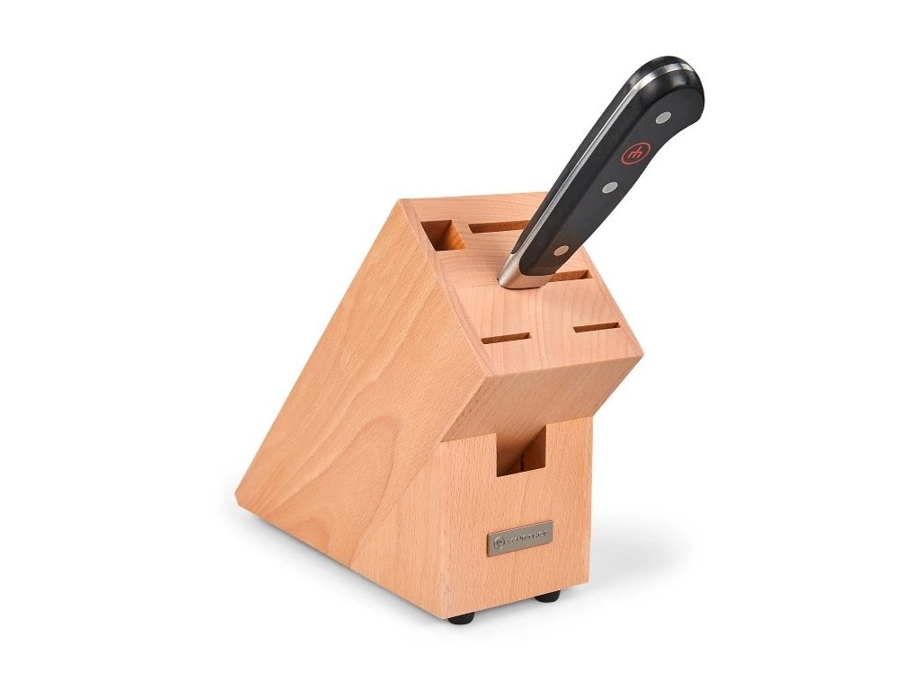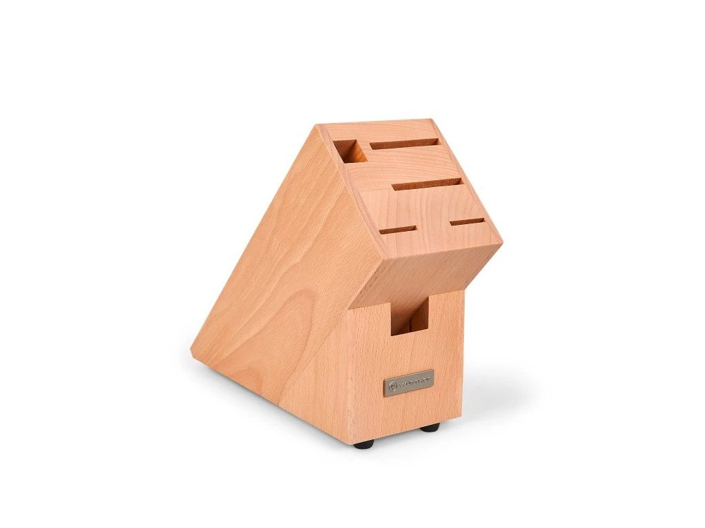 - Blok z bukového dřeva pojme 4 nože, ocílku a kuchyňské nůžky