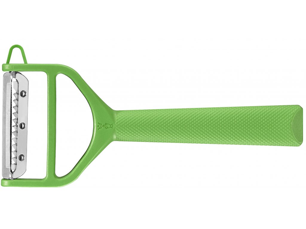 Škrabka Opinel T-DUO plastová v zelené barvě, má dvě různé čepele. První čepel s mikro vroubkováním je vhodná pro všechny druhy zeleniny a ovoce včetně rajčete či papriky. Druhé ostří je tzv. Julianne, které Vám umožní strouhat zeleninu na jemné proužky.