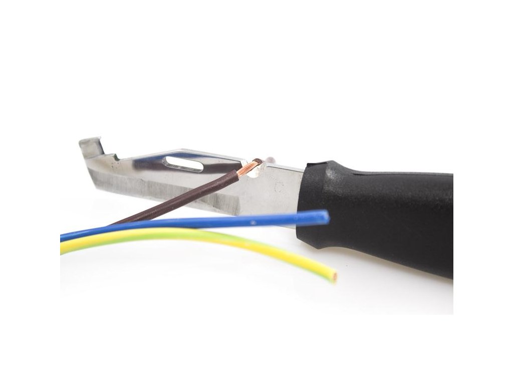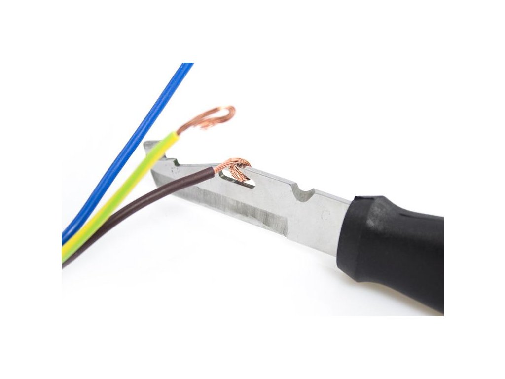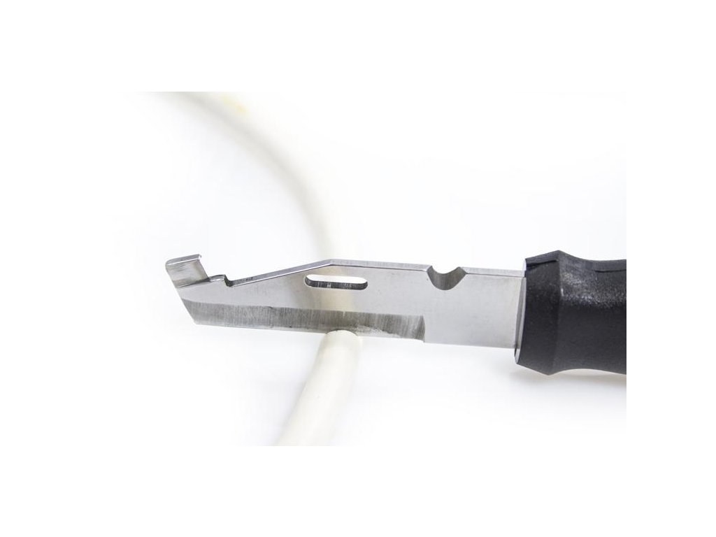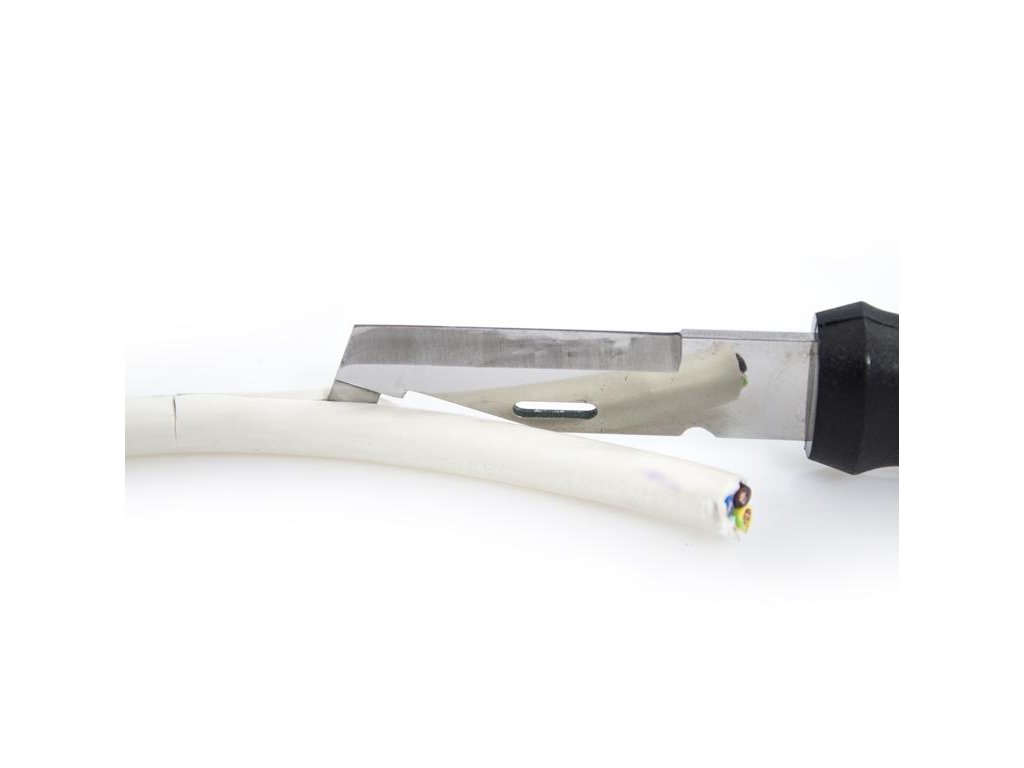 - Speciální tvar špičky nože je určen pro prořez plášťů elektrických kabelů a jejich následnému odizolování