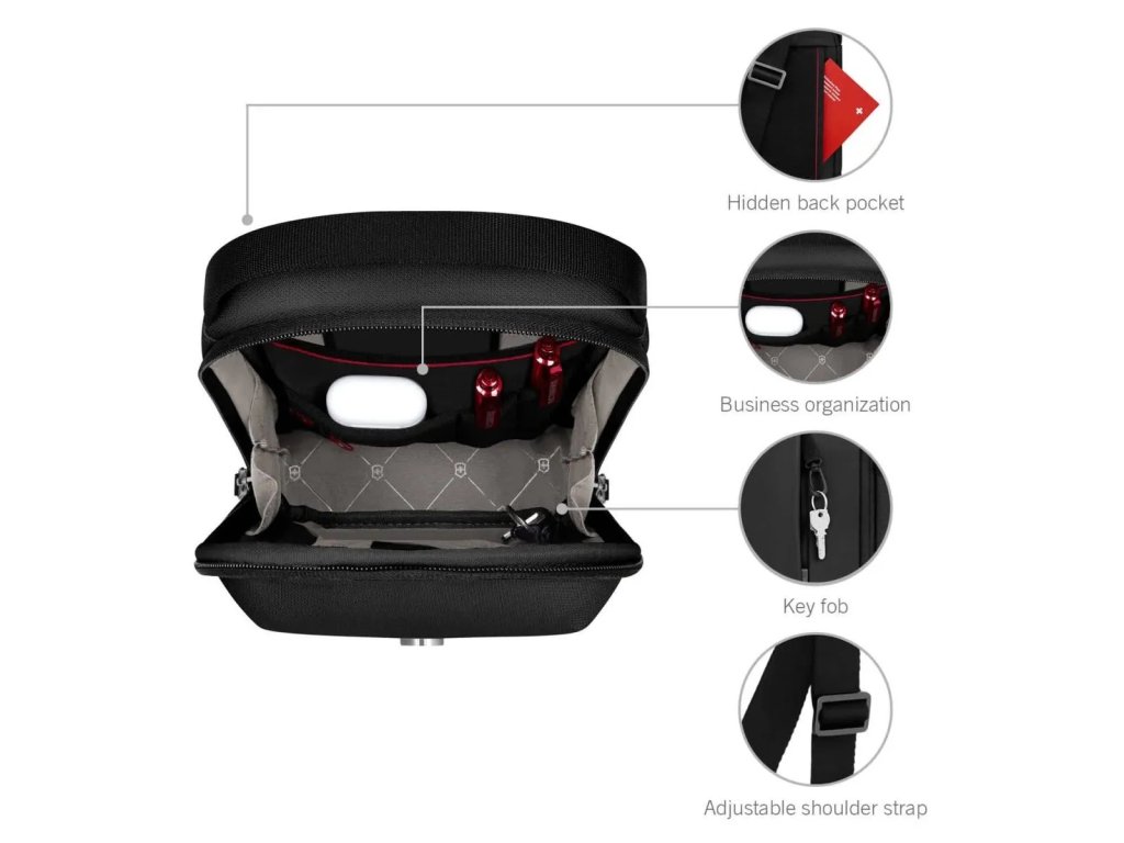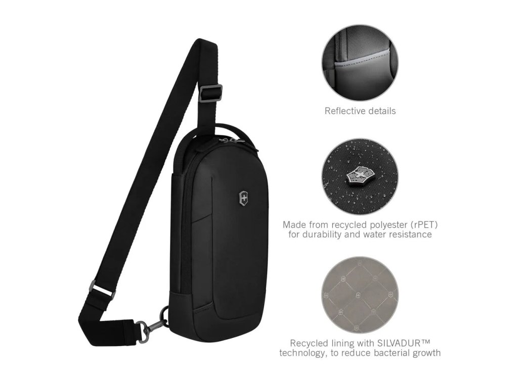 - Díky promyšleným detailům odrážejícím světlo je taška Victorinox Sling Bag viditelná i za špatných světelných podmínek
