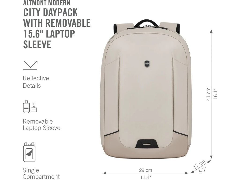 - Batoh Victorinox City Daypack uspokojí všechny vaše cestovní potřeby, ať už je uložen pod sedadlem před vámi nebo bezpečně na zádech pro cesty po městě