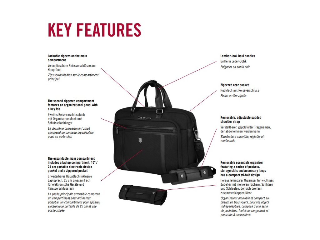 - Vlastnosti kolekce Werks Professional jsou ukázkou praktičnosti a výkonu. Každý kus byl pečlivě navržen pro daný účel se speciální ochranou pro notebook i tablet. Zavazadla jsou lehká, odolná, elegantní a vysoce organizovaná, takže ať už jste student nebo generální ředitel, můžete svou práci bezpečně nosit pohodlně a stylově.