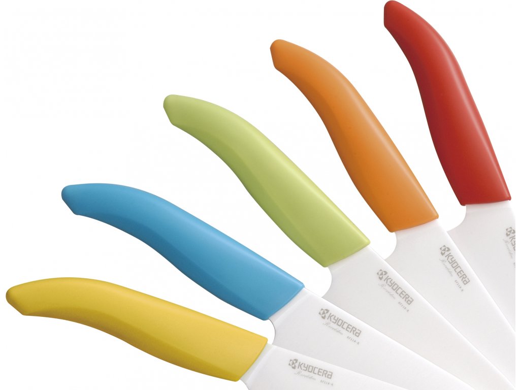 Nadnárodní společnost Kyocera je jedním z prestižních výrobců zaměřených na výrobky z keramiky, založená roku 1959. Největším sortimentem, kterým se firma Kyocera zabývá, jsou keramické kuchyňské nože. Nože pro všechny kuchaře a na veškeré použití. Prvotřídní kvalita kuchyňských nožů je ostře sledována. Keramický nůž zůstává ostrý celé roky. Velkou výhodou oproti ocelovým nožům je odolnost proti skvrnám, rezavění, nezanechává kovovou chuť a hlavně neničí vitamíny v krájených potravinách. Čepel je nepřilnavá a umožní rychlejší a jistější krájení měkkých potravin a čerstvého pečiva. Keramické nože skvěle padnou do každé ruky, jsou dokonale vyvážené a lze je jednoduše udržovat. Kuchyňské nože jsou praktickým pomocníkem a jejich vynikající vlastnosti využijete při krájení: sýrů, pečiva, uzenin, vykostěného a rozmraženého masa, cibule, mrkve, cukety, bylinek, jablek, atd. Pro zajištění jejich dobré služby a dlouhé životnosti se nesmí používat na tvrdé a zmrzlé potraviny, při vykosťování a jiné činnosti, při nichž by docházelo k mechanickému namáhání (ohybu). Keramické nože se vyrábějí v několika barevných provedeních, a to jak čepel, tak rukojeť.