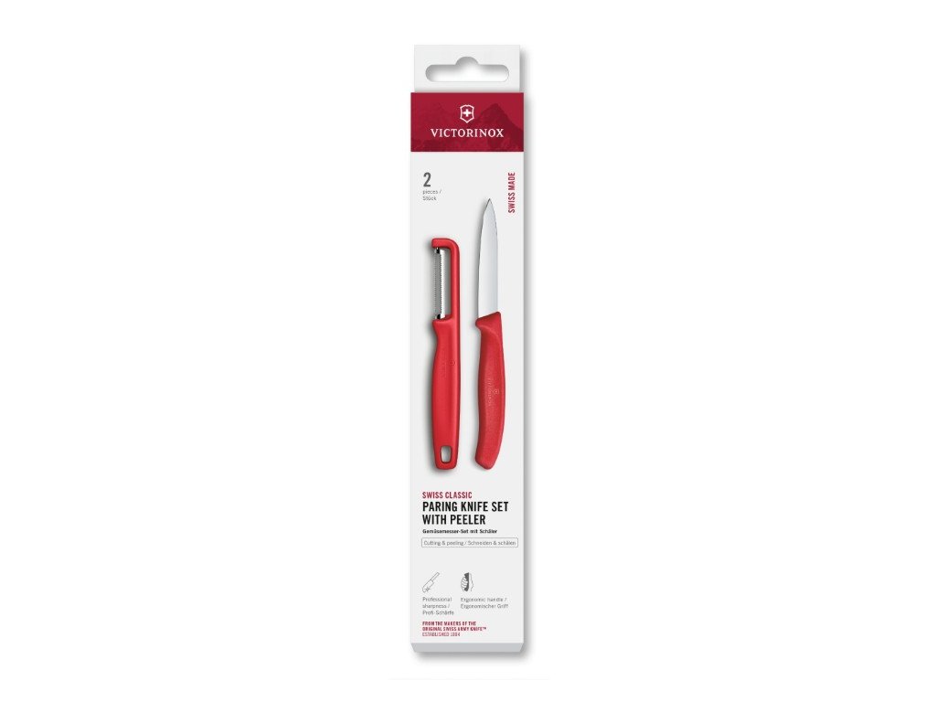 Sada kuchyňského nože a škrabky Victorinox Swiss Classic 2 ks, červená
