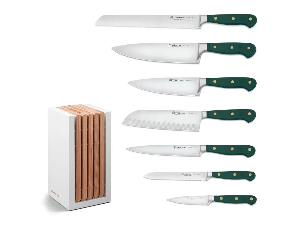 Sada kuchyňských nožů Classic Colour - Fresh Rosemary, 7 ks - Wüsthof Solingen v bílo/přírodním dřevěném stojanu