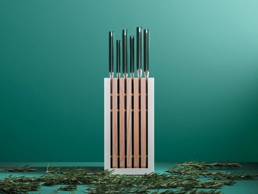 - Nože lze mýt v myčce nádobí, stojan nelze mýt v myčce nádobí