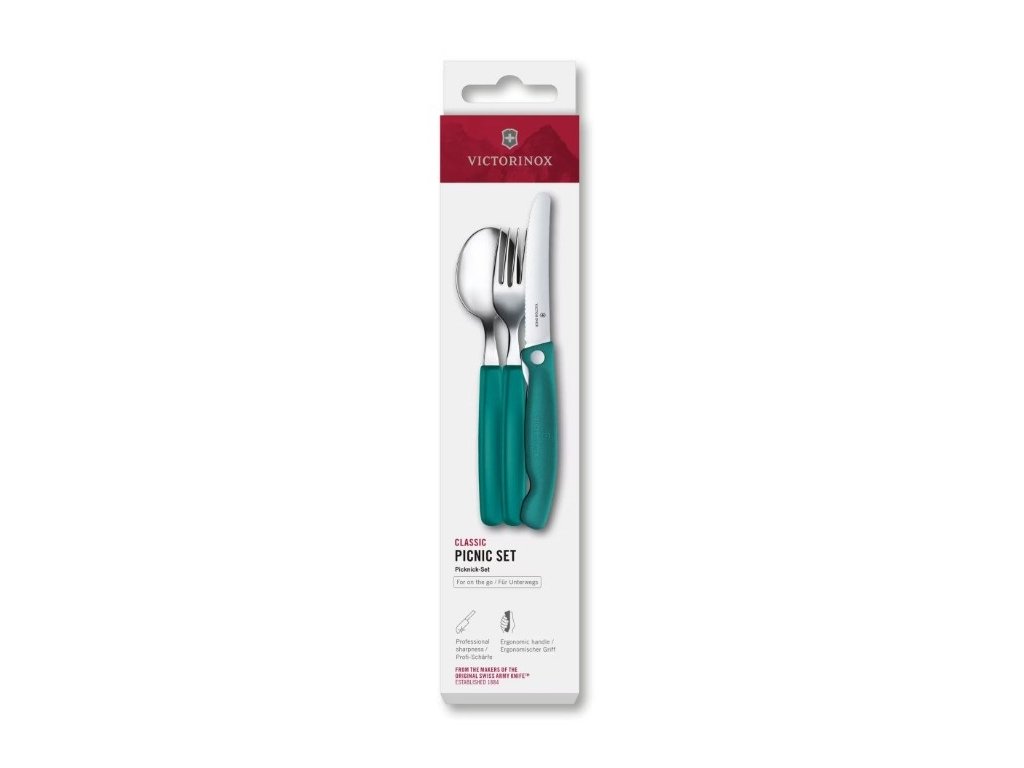 Sada piknik se skládacím nožem Victorinox Swiss Classic 3 ks, zelená
