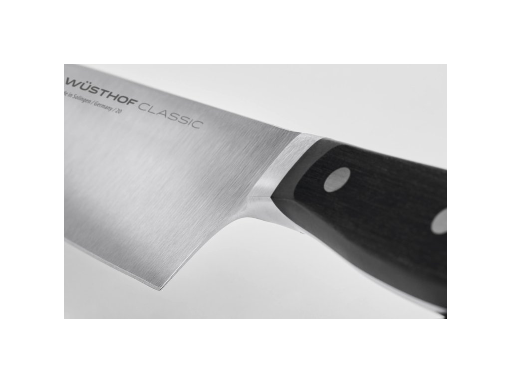 Kovaný asijský nůž Surfer Wüsthof Classic s 12 cm dlouhou čepelí je vhodný na nejjemnější krájení, sekání či kostkování všech druhů potravin (maso, ovoce, zeleninu i bylinky či mělnit česnek). Široká čepel umožňuje rychlý přesun nakrájených surovin do hrnce.