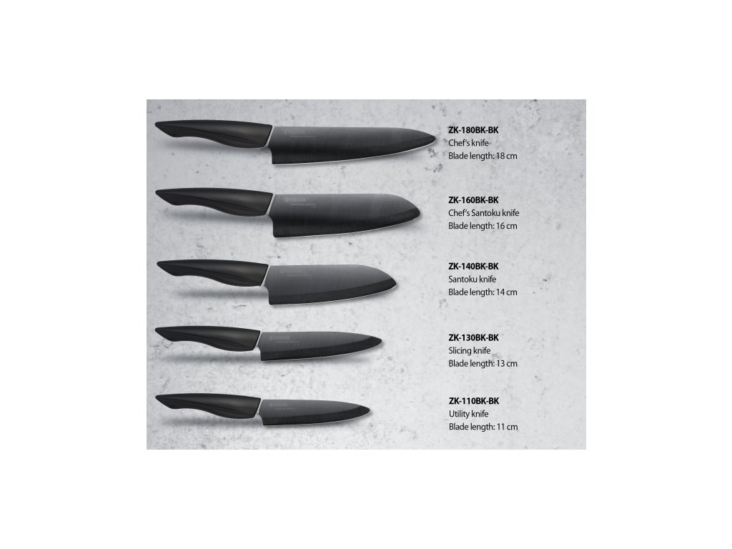 Nadnárodní společnost Kyocera je jedním z prestižních výrobců zaměřených na výrobky z keramiky, založená roku 1959. Největším sortimentem, kterým se firma Kyocera zabývá, jsou keramické kuchyňské nože. Nože pro všechny kuchaře a na veškeré použití. Prvotřídní kvalita kuchyňských nožů je ostře sledována. Keramický nůž zůstává ostrý celé roky. Velkou výhodou oproti ocelovým nožům je odolnost proti skvrnám, rezavění, nezanechává kovovou chuť a hlavně neničí vitamíny v krájených potravinách. Čepel je nepřilnavá a umožní rychlejší a jistější krájení měkkých potravin a čerstvého pečiva. Keramické nože skvěle padnou do každé ruky, jsou dokonale vyvážené a lze je jednoduše udržovat. Kuchyňské nože jsou praktickým pomocníkem a jejich vynikající vlastnosti využijete při krájení: sýrů, pečiva, uzenin, vykostěného a rozmraženého masa, cibule, mrkve, cukety, bylinek, jablek, atd. Pro zajištění jejich dobré služby a dlouhé životnosti se nesmí používat na tvrdé a zmrzlé potraviny, při vykosťování a jiné činnosti, při nichž by docházelo k mechanickému namáhání (ohybu). Keramické nože se vyrábějí v několika barevných provedeních, a to jak čepel, tak rukojeť.